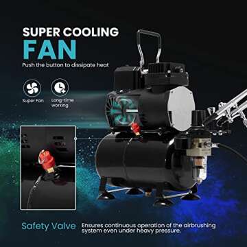 - Complete Accessories: The kit offers a dual fan airbrushing system including a compressor-mounted airbrush holder for two airbrushes, ensuring organization during use.