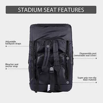 Your safety and usability are ensured with an anti-skid surface that incorporates rubberized bottoms and anchor straps, securely holding your chair in place even on slick bleachers. Transitioning from bleachers to backpack mode is effortless—just press the backrest six times, and you're ready to go! Lightweight yet durable, they are perfect for on-the-go lifestyles.