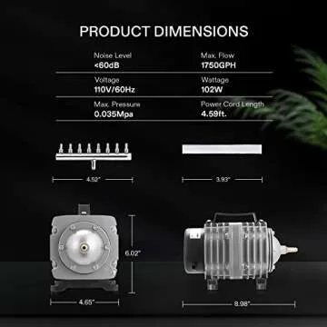 VIVOSUN Commercial Air Pump 1750 GPH 102W 110L/min 12 Outlet for Aquarium and Hydroponic Systems