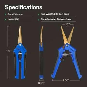 Show moreIntroducing the Vivosun Curved Blade Pruner, a gardener's essential tool that combines precision, comfort, and innovative design to enhance your gardening experience. Featuring curved blue blades that minimize the risk of accidental cuts, these pruners are ideally suited for delicate tasks, ensuring that you only trim what is necessary while leaving your plants unharmed.