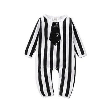 Show more Introducing the enchanting Viworld Baby Boy Halloween Outfits, a delightful striped long sleeve jumpsuit romper that embodies the spirit of fun and creativity! Designed with irresistible vertical black and white stripes, this stylish outfit features an adorable necktie and cozy long sleeves, making it the perfect choice for your little one's Halloween festivities and beyond. Crafted with the utmost care, this costume not only brings joy to your child but also offers versatility for various occasions, allowing them to engage in imaginative role play and charming dress-up moments.