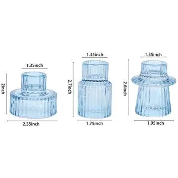 Vixdonos Glass Candlestick Holders Tealight Candle Holders for Table Centerpieces, Wedding Decor and Dinner Party (3 Pcs, Light Blue)