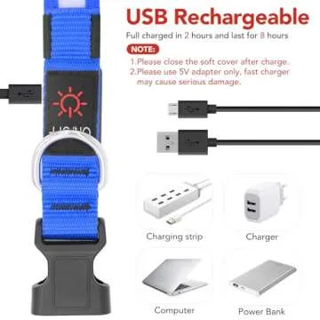 Vizpet LED Dog Collar, Light Up Dog Collar Adjustable USB Rechargeable Super Bright Safety Light Glowing Collars for Dog(Large,Blue)