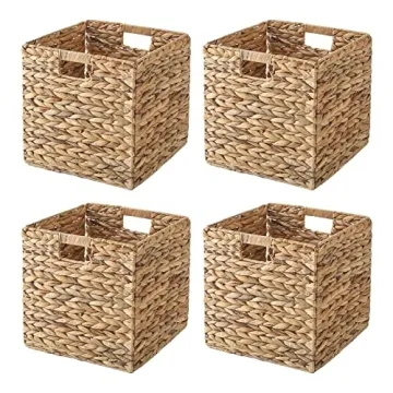 VK·LIVING Foldable Handwoven Water Hyacinth Storage Baskets - 4 Pack of Stylish Cube Organizers