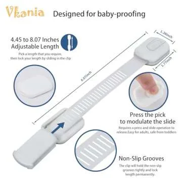 Vkania Baby Proofing Cabinet Strap Locks - Child Safety Drawer Cupboard Oven Refrigerator Adhesive Locks - Adjustable Toilets Seat Fridge Latches - Kids Proof Kit - No Drilling(12 Pack )