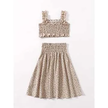 VKOMEO Toddler Girl Skirt Sets Ruffle Sleeveless Sling Tank Tops A-Line Skirt 2Pcs Polka Dot Kids Girl Summer Outfit Clothes 1-2T