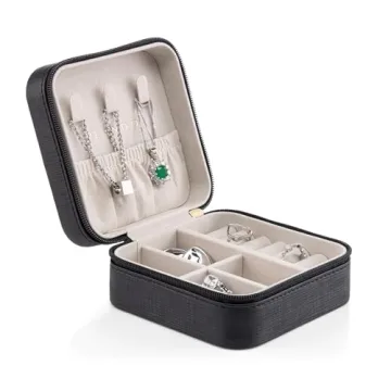 Show moreDiscover the perfect blend of style and practicality with the Vlando Small Faux Leather Travel Jewelry Box Organizer. Ideal for every jewelry enthusiast, this compact accessory is tailored to accommodate all your treasured items without compromising on elegance. Measuring a stylish 4" x 4" x 2", it effortlessly fits into your luggage or handbag, making it an essential travel companion. With premium faux leather craftsmanship and plush velvet lining, your jewelry is pampered with luxury and protection. The sleek design captures the essence of modern fashion, ensuring you make a statement wherever you go.