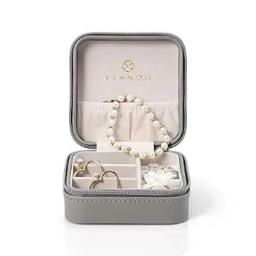 Vlando Small Faux Leather Travel Jewelry Box Organizer Display Storage Case for Rings Earrings Necklace, Gray