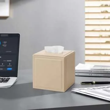 Vlando Tissue Box Holder Cover Leather Button Square Closed Tissue Organizer Used for Bathroom Vanity Tops, Bedroom Dressers, Bedside Tables, Desks and Tables Christmas Decorations Indoor Beige