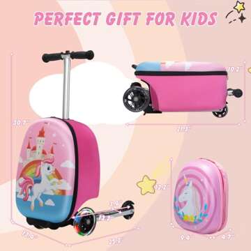 Show moreIntroducing the **VLIVE Scooter Suitcase**, the ultimate travel companion designed specifically for girls aged 3-5! This innovative 2-in-1 product seamlessly transforms from a suitcase into a fun toddler scooter, ensuring that your little ones can scoot through long lines with ease and excitement. Our suitcase is equipped with vibrant designs and essential features, including a 12" backpack that complements the suitcase perfectly, making it ideal for packing clothing, toys, and all their travel essentials.