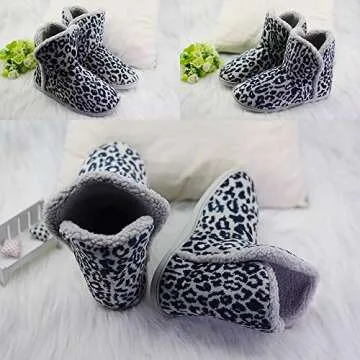VLLY Fluffy Faux Fur Slipper Boots Women Soft Cozy Memory Foam Midcalf Booties Indoor House Pull on Shoes 7-8 Gray Leopard
