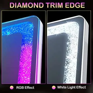 Crafted from high-quality aluminum alloy, the frame is both non-deformable and durable, ensuring that your mirror will last for years to come. The smooth edges provide additional safety, protecting your hands from injury, while the unique diamond-shaped crystal light adds a stylish touch that perfectly complements your home decor. The mirror itself boasts an HD glass thickness of 5mm, ensuring you get a clear and accurate reflection, free from distortions.