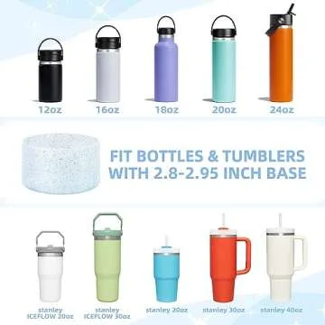 Vmini Protective Glitter Silicone Boot, Compatible with Stanley Tumbler 20-40oz & Hydro Flask Water Bottle 12-24oz and More Bottles/Tumblers with 2.8-2.95in Bottom, Bling Anti-Slip Sleeve Cover