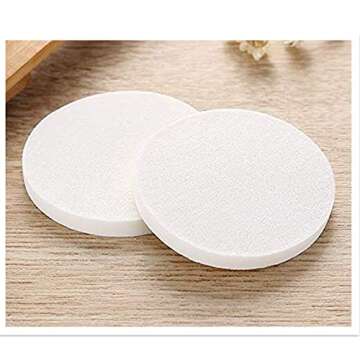 Show more Introducing the ultimate makeup companion - our premium Sponge Makeup Applicators. This set includes 20 soft, high-quality sponge puffs, each measuring approximately 5.3 x 0.6 cm. Designed with versatility in mind, these sponges are perfect for both wet and dry applications, allowing you to create a flawless and even base makeup. No more worries about hard-to-reach areas; their flexible design allows you to effortlessly blend makeup into every contour, including the delicate corners around the eyes.