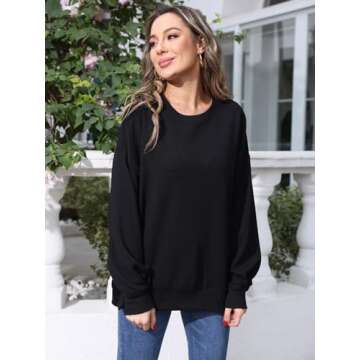 VNIRA Women’s Crewneck Sweatshirt - Oversized Casual Black Tunic XL