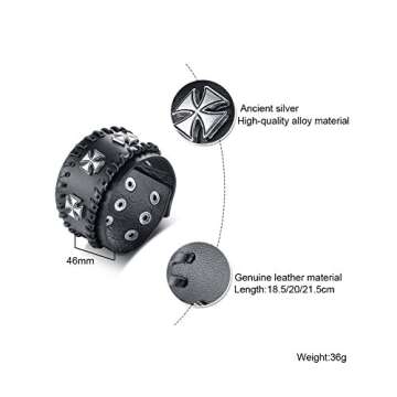 Why You Will Love This Product? You'll love the VNOX Religious Vintage Black Genuine Leather Maltese Cross Biker Rocker Cuff Wristband Bracelet not only for its striking appearance but also for the stories and statements it represents. Every time you wear this bracelet, you carry a piece of your beliefs and passions with you. It's not just an accessory, but a reminder to express your individuality, inspire confidence, and stay true to your roots while embracing your modern lifestyle.