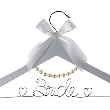 Show moreIntroducing the unique handmade Bride wedding dress hanger, a perfect blend of functionality and elegance. This exquisite hanger is not just a practical accessory for the bride's wedding gown but also an enchanting keepsake that holds sentimental value. Crafted from solid wood, adorned with silver metal wire, white ribbon, and dazzling pearl decorations, it embodies the charm of a wedding day.