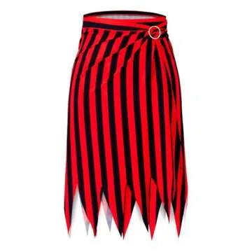 Show more Step into a world of adventure and excitement with our stunning pirate costume set! This all-inclusive package features everything you need to transform into a daring swashbuckler. Each set includes a stylish pirate skirt with a length of 30 inches and a width of 47 inches, ensuring a dazzling fit for all adventurers. Accompanying accessories include a classic pirate eye patch, a striking pair of earrings, a vibrant red headband, and an eye-catching skull necklace. The unique design of the skirt is inspired by medieval and renaissance styles, combining contrasting colors to create an authentic pirate look that will surely turn heads.