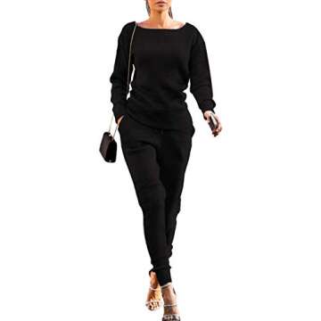 VNVNE Womens Fall Rib-Knit Pullover Sweater Top & Long Pants Set 2 Piece Outfits Tracksuit (Black, S)