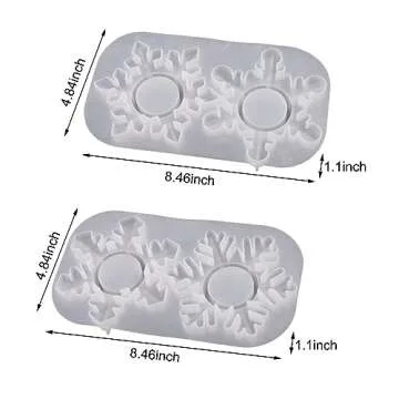 Show moreTransform your holiday decor with the versatile Voaesdk 2 Sets Snowflake Candle Holder Resin Molds. Featuring two sets of silicone molds that encompass four exquisite snowflake designs, each mold measures approximately 8.46 * 4.84 * 1.1 inches. Designed for the DIY enthusiast, these molds allow you to create elegant and unique resin decorations that will surely brighten up any space. Perfect not only for Christmas but also for adding a whimsical touch to any occasion, these snowflake molds are the ideal choice for crafting your own custom candle holders.