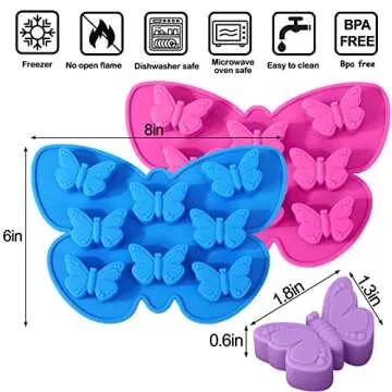 Vodolo 2 Pcs Butterfly Ice Cube Tray,Butterfly Mold Silicone for Chocolate Candy Gummy Baking,Jelly, Pudding,Soap, Cake Mold