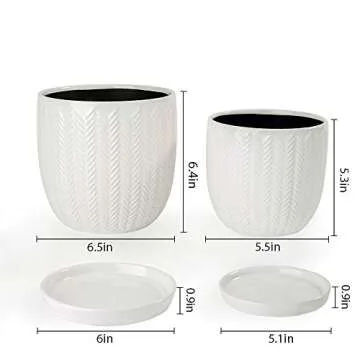 Voeveca Ceramic Flower Pot Garden Planters 6.5" and 5.5" Set of 2 with Drinage and Saucer Indoor Outdoor, Modern Nordic Style Plant Containers (White)