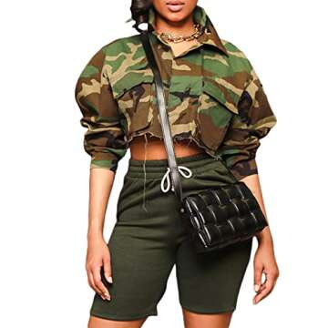 Voghtic Camo Coat for Women Lapel Neck Button Down Cropped Jackets with Cargo Pockets