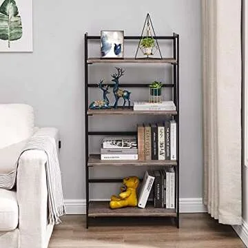 Vogue Carpenter 4-Tier Bookcase Shelf Organizer, No-Assembly Sturdy Foldable Rustic Stand Storage Shelves 23.6x11.6x49.2 Inch