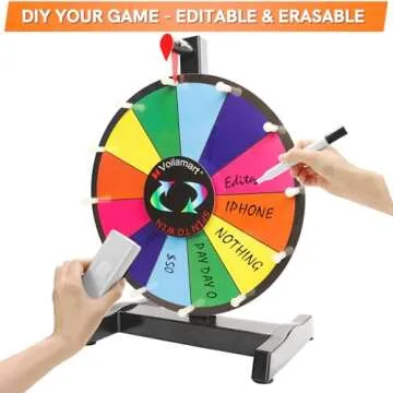 Voilamart 12" Tabletop Spinning Prize Wheel 12 Slots with Durable Plastic Base, Dry Erase, 2 Pointer, for Fortune Spin Game in Party Pub Trade Show Carnival