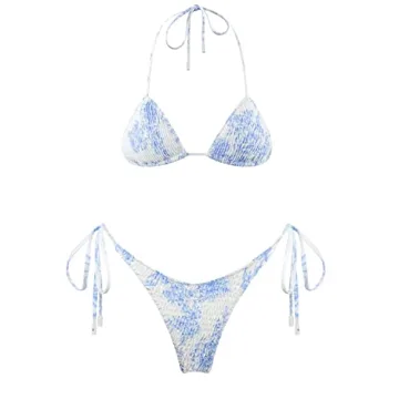 Designed for the fashionable woman, this bikini features a vibrant light blue print that captures the spirit of summer. Each piece has been constructed with meticulous attention to detail, ensuring that you're not only looking good but feeling good too. Whether you prefer to relax by the pool or engage in your favorite water sports, this bikini supports your active lifestyle while keeping you stylish. The fabric is not only luxurious but also incredibly durable, perfect for frequent wear during beach outings.