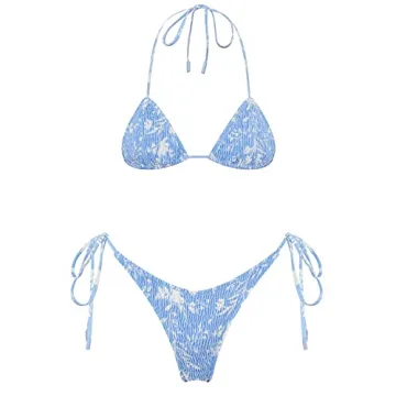 From the voguish smocked design to the eye-catching vibrant colors, this bikini is tailored to enhance your natural shape and grace. The triangle top is flattering for all body types, while the minimal coverage design is perfect for tanning and showing off your sun-kissed skin. Detailed stitching and an emphasis on quality craftsmanship attest to its functional attributes, ensuring that you not only look good but feel good too!