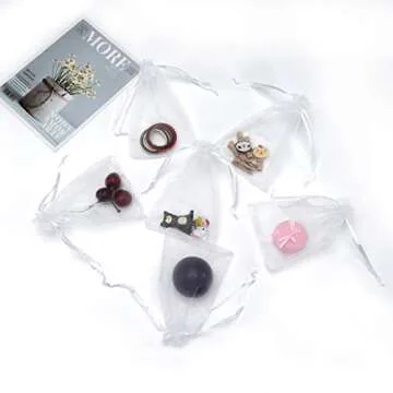 Show moreExperience elegance and versatility with the Volcanic 100PCS 4X6 Inch Sheer Organza Bags. Crafted from premium quality organza, these bags are not just a functional accessory but a stylish way to present your gifts. Whether you're preparing for a wedding, a birthday party, or a festive holiday gathering, these exquisite sheer bags will elevate your gift-wrapping game. Each bag is designed with a convenient drawstring, ensuring that your cherished items are securely enclosed while still being easy to access. Their beautiful sheer quality allows a graceful glimpse of the treasures inside, adding an extra touch of charm to any occasion.