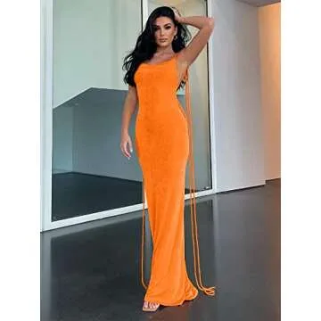 Volemo Women’s 2024 Summer Spaghetti Strap Bodycon Dress - Backless Maxi Cocktail Dress in Orange
