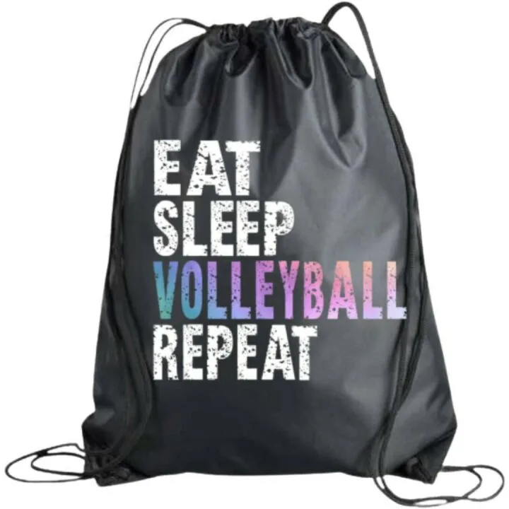 The Volleyball Drawstring Bag by Sportybella is a must-have for volleyball enthusiasts. This versatile bag features the popular 'Eat. Sleep. Volleyball. Repeat.' design, making it the perfect accessory to showcase your love for the sport. With its multifunctional design, you can wear it as a backpack, sling it over your shoulder, or carry it using the sturdy drawstrings. The options are endless, allowing you to take your volleyball essentials everywhere with ease.