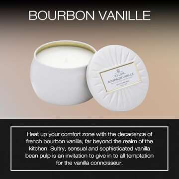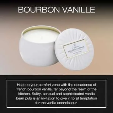 Voluspa Bourbon Vanille, Mini Tin Candle, 4 oz, 25 Hour Burn Time, Coconut Wax for Clean Burning, Handcrafted in the USA
