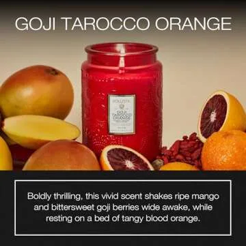 Voluspa Goji Tarocco Orange, Large Candle Jar, 18 oz, 100 Hour Burn Time, All Natural Wicks and Coconut Wax for Clean Burning, Vegan, Poured in the USA