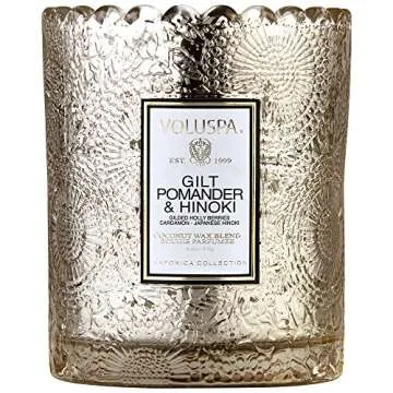 Voluspa Holiday - Gilt Pomander and Hinoki Boxed Scalloped Edge Glass Candle, 6.2 Ounces