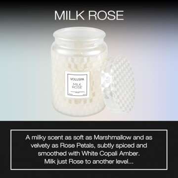 Voluspa Milk Rose, Large Candle Jar, 18 Ounce, 100 Hour Burn Time, Coconut Wax for Clean Burning, Handcrafted in The USA