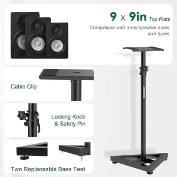 Show moreThe Vondynote Studio Monitor Stands are the perfect blend of functionality and aesthetic appeal for anyone serious about sound. Designed for home studios, theaters, and other settings, these stands ensure that your speakers are positioned optimally for the best audio experience. With a versatile adjustable height ranging from 32.6" to 50.9", you can quickly adapt them to fit your environment, whether you're seated or standing. The robust design features a heavy-duty three-point triangle base that offers enhanced stability, making it ideal for securely holding monitors up to 88 lbs.