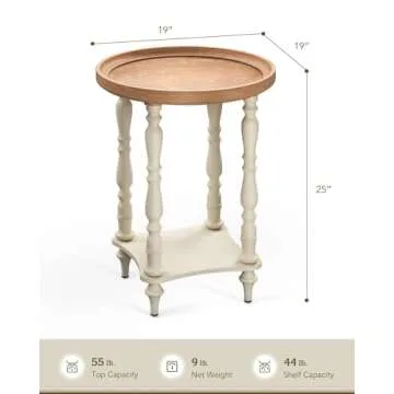 Show more Discover the perfect blend of elegance and functionality with the Vonluce 19-inch round end table, a stunning piece of modern farmhouse decor. This end table radiates French country charm while providing versatile functionality to effortlessly fit into your living space. Whether you place it in your living room or bedroom, it offers a delightful accent that complements a variety of home decor styles.