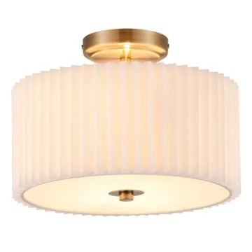 VONLUCE Semi Flush Mount Ceiling Light with Pleated Shade, 13'' Fixture
