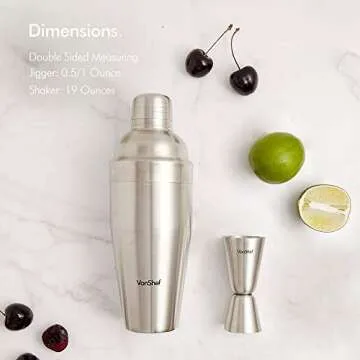 Elevate your mixology skills with the VonShef 5pc 19oz Manhattan Cocktail Shaker Bartender Set, a standout collection crafted from high-quality stainless steel. This exceptional set is a must-have for cocktail enthusiasts and aspiring mixologists alike, designed not only for functionality but also for a sleek, modern aesthetic. Its sturdy construction ensures that you can shake, stir, and pour with confidence, while its ability to seal tightly eliminates the risk of any spills. Whether for...