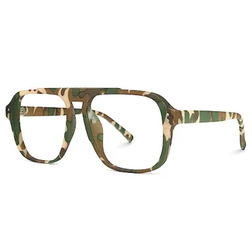 Show moreStep up your eyewear game with the VOOGLAM Oversize Aviator Blue Light Blocking Glasses. These stylish glasses combine functionality and fashion, uniquely designed to block harmful blue light and reduce eyestrain while you indulge in screen time or outdoor activities. Crafted from lightweight TR90 material, they ensure maximum comfort without compromising on style. The fashionable camouflage print frame sets you apart in any setting, making it the perfect accessory for both men and women.