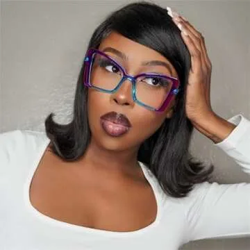 Show moreIntroducing the VOOGLAM Oversize Cat Eye Blue Light Blocking Glasses for Women, a chic and essential accessory that blends style with functionality. Designed with a stunning purple acetates finish, these oversize cat-eye frame glasses are not only elegant but also immensely comfortable to wear for extended periods. The unique cat-eye design combined with an array of vibrant colors allows you to express your individuality, enhancing any outfit with a fashionable pop. But these glasses offer much more than aesthetics; equipped with blue light blocking lenses, they protect your eyes from harmful blue light emitted by screens, significantly reducing eye strain and ensuring your comfort during long hours of computer use.