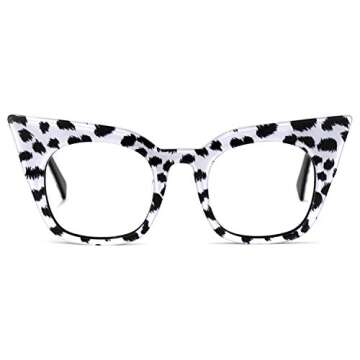 Voogueme Black White Leopard Cat Eye Blue Light Glasses for Women Block UV Anti Eyestrain Eyewear Chandra WA096252-05, Medium