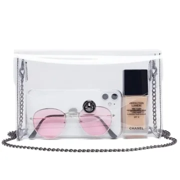 Show more Introducing a beautifully designed bag that combines style and practicality seamlessly! This clear handbag measures 8.6 x 6 x 2 inches, making it the ideal companion for carrying your essentials such as your phone, keys, lipstick, cash, sunglasses, a small wallet, and toiletries. The Vorspack clear handbag is not only fashionable but also versatile, featuring an adjustable and detachable chain that reaches 54.5 inches. You can effortlessly customize the bag to be a shoulder bag, crossbody bag, or simply remove the chain to carry it as a chic handbag.