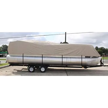 Show moreIntroducing the Vortex Direct 26' Tan/Beige Pontoon Boat Cover, expertly engineered to offer top-notch protection for your pontoon boat. Designed to fit boats with a length ranging from 24'1" to 26' and a wide beam up to 102", this cover is made with durability and flexibility in mind. The standout feature of this cover is the elastic sewn into the hem, ensuring a snug and secure fit that embraces your boat's contours while preventing it from blowing away in harsh conditions. Additionally, included is a robust strap system that adds an extra layer of security, giving you peace of mind while your boat is moored or in storage. Each purchase comes with a convenient storage bag, making it easy to fold and store the cover when it’s not in use, ensuring it stays in peak condition for your next boating adventure.