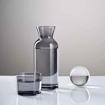 VOSS Living - Bedside Water Carafe and Glass Set, 23.6 Oz - Water Decanter Bedside with Glass - Nightstand Water Carafe and Glass - Mouthwash Carafe (Ivory Black)