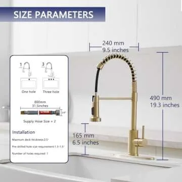 VOTON Kitchen Faucets with Pull Out Sprayer Commercial Spring Sink Faucet Stainless Steel Brushed Gold Pull Down Single Handle Farmhouse faucets with Deck Plate for Camper Laundry Utility Rv Wet Bar