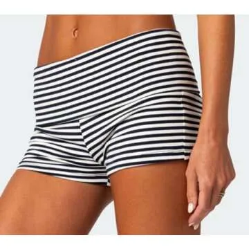 Votuleazi Women Y2k Fold Over Waist Shorts Ribbed Knit Biker Shorts Wide Waistband Rollover Shorts(Cute Colorful ,Medium)